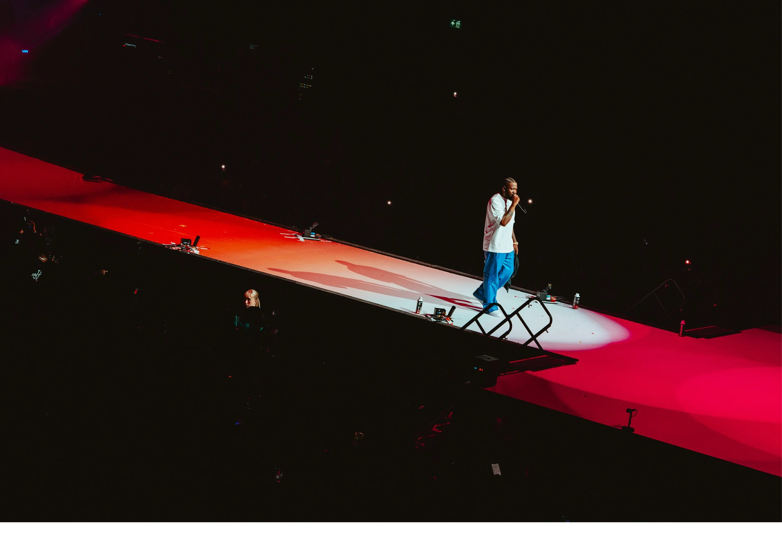 For Dutch rapper CHO’s performance at the Ziggo Dome, in close collaboration with Shay Latukolan, Own Space Studio created a spatial concept connecting two contrasting stages - one red, one white - through a gradient runway that visually and physically united them.